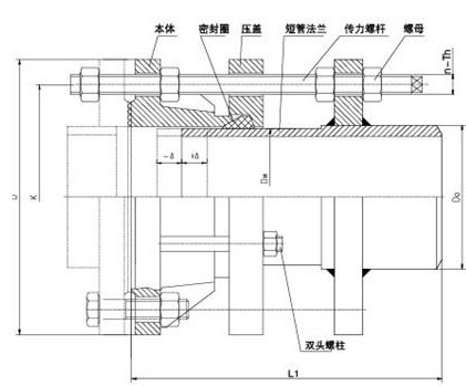 VSSJAF(C2F)雙法蘭松套傳力接頭結(jié)構(gòu)示意圖:
